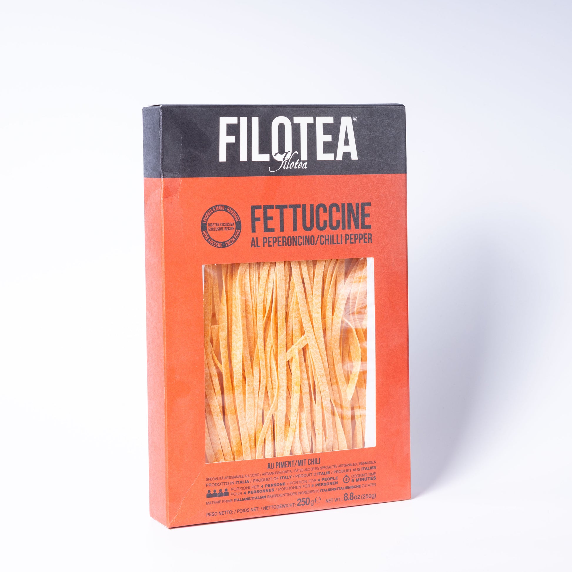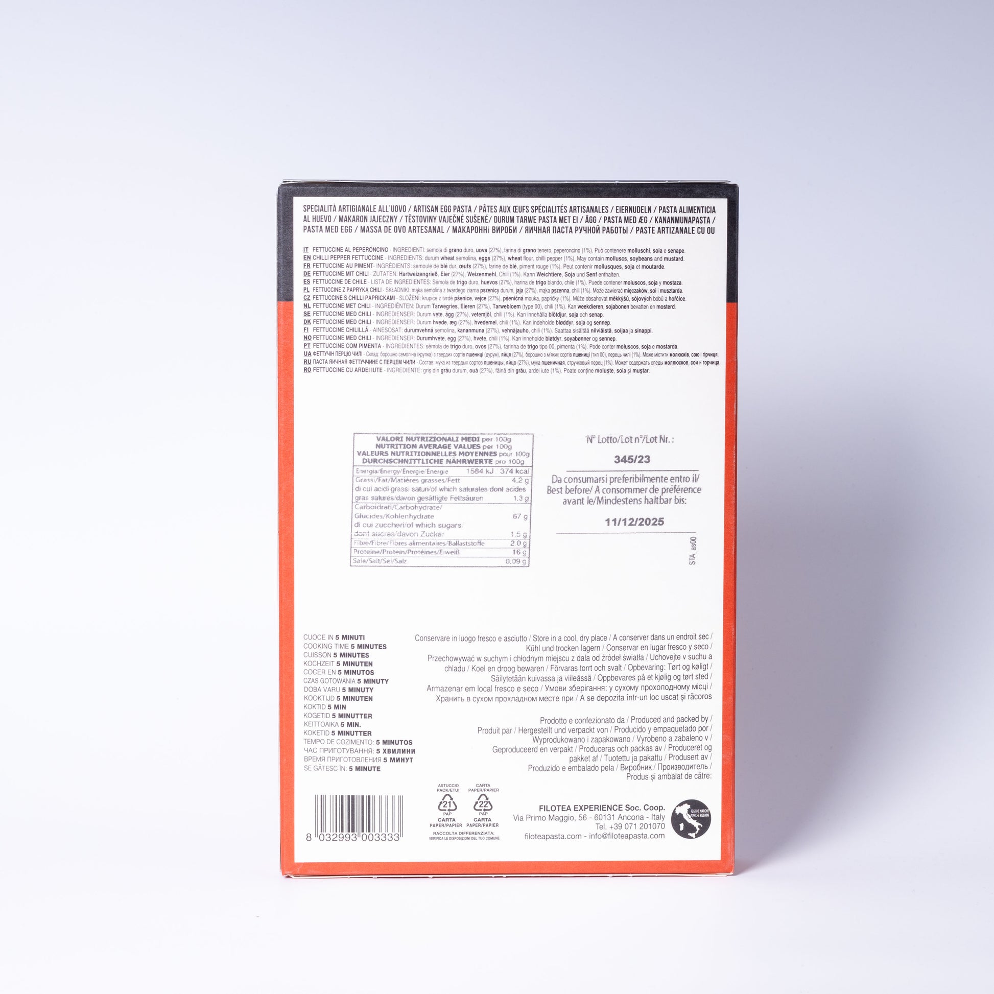 Die Fettuccine al Peperoncino sind traditionell hergestellte Fettuccine mit Habanero-Chili zubereitet und passen sehr gut zu pikanten Saucen oder der klassischen Arrabbiata. Die perfekte Kochzeit liegt bei 4 Minuten.