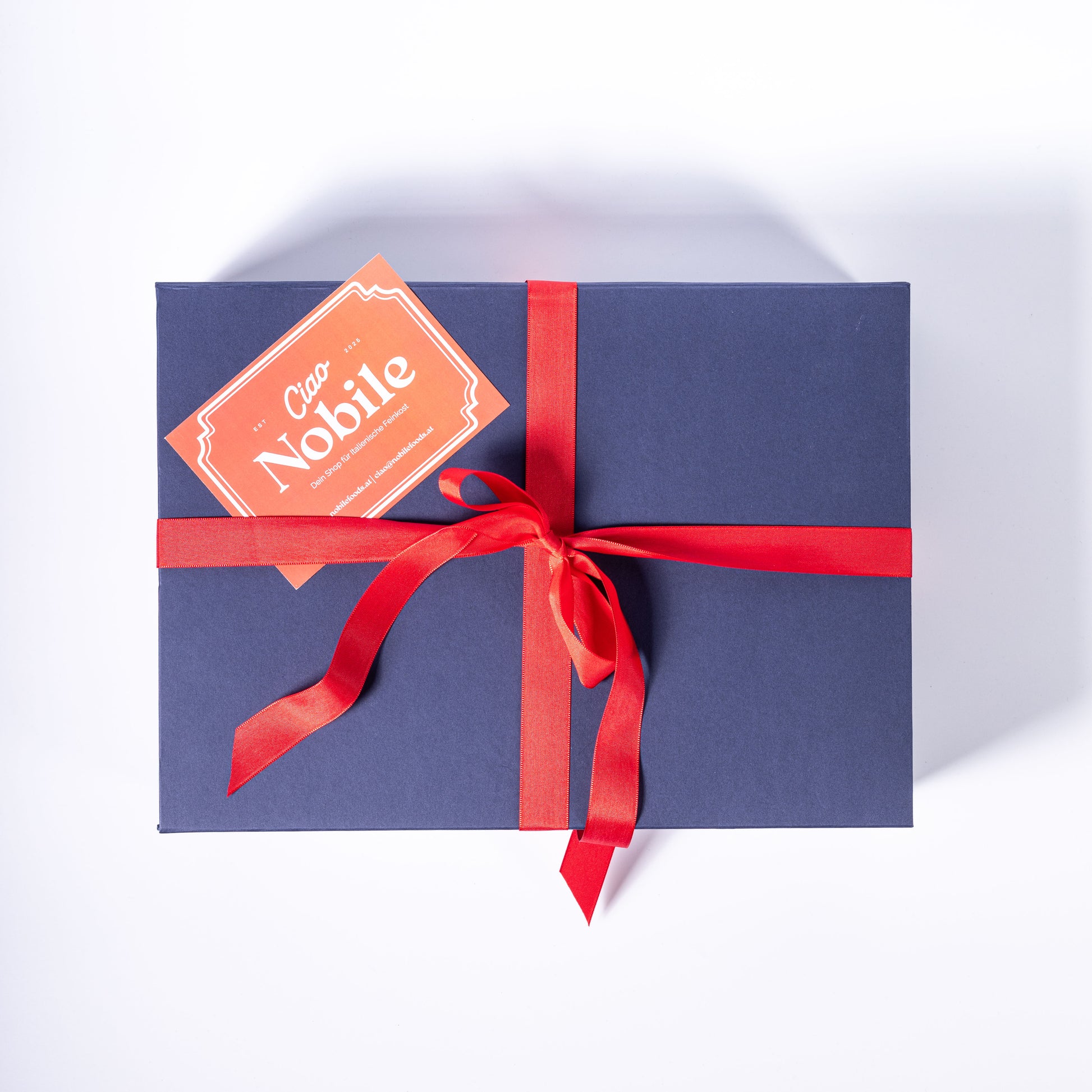 Diese Geschenkebox verbindet alle Elemente, die man für authentisches italienisches Kochen auf höchstem Niveau benötigt – stilvoll, vielseitig und voller Charakter. Jede Geschenkebox wird hochwertig in einer eleganten Magnetbox mit Schleife und Weihnachtsgrußkarte verpackt – ein edles Präsent für Feinschmecker und Italienliebhaber.