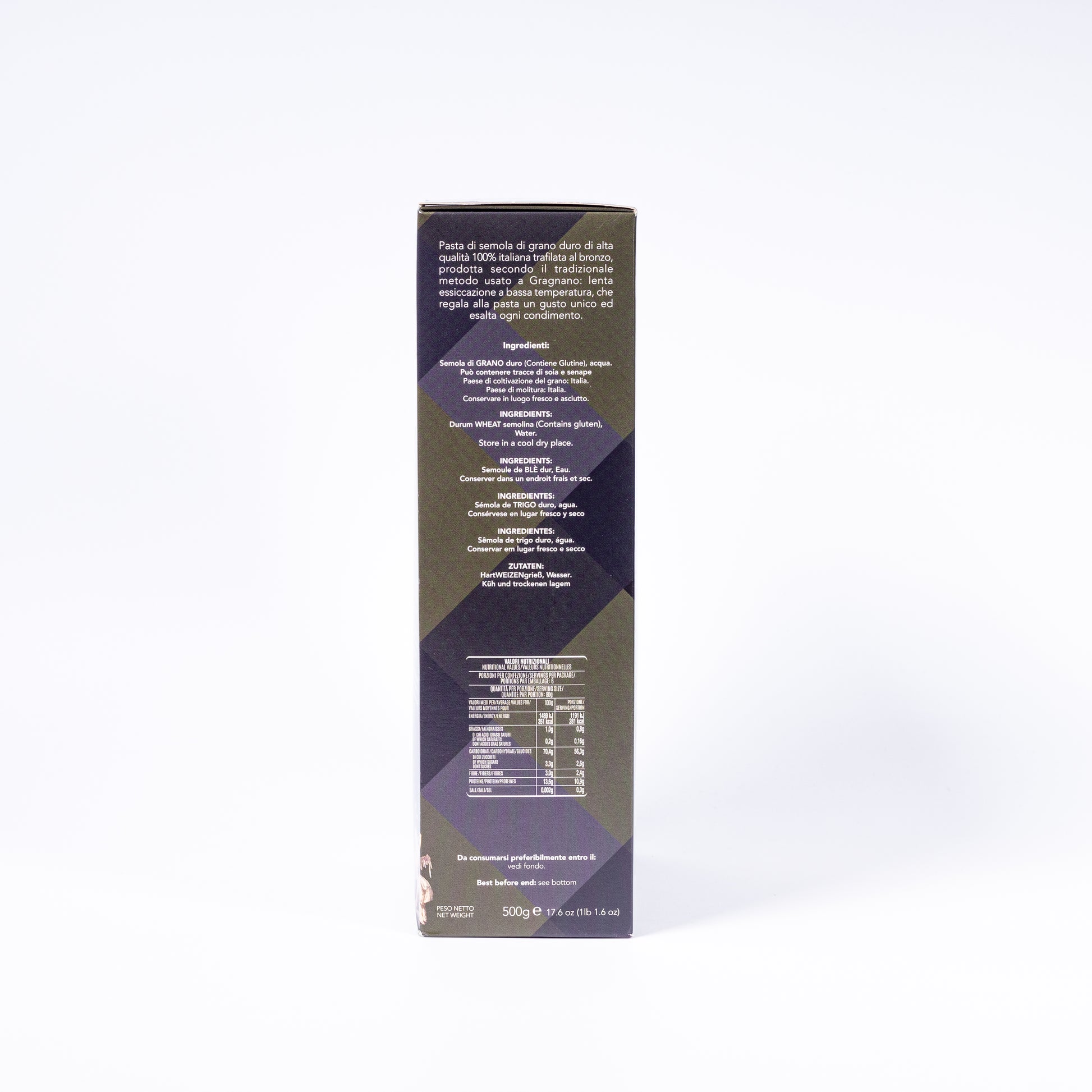 Nur zwei Zutaten: 100 % italienischer Hartweizengrieß und reinstes Quellwasser aus den Monti Lattari – sonst nichts.