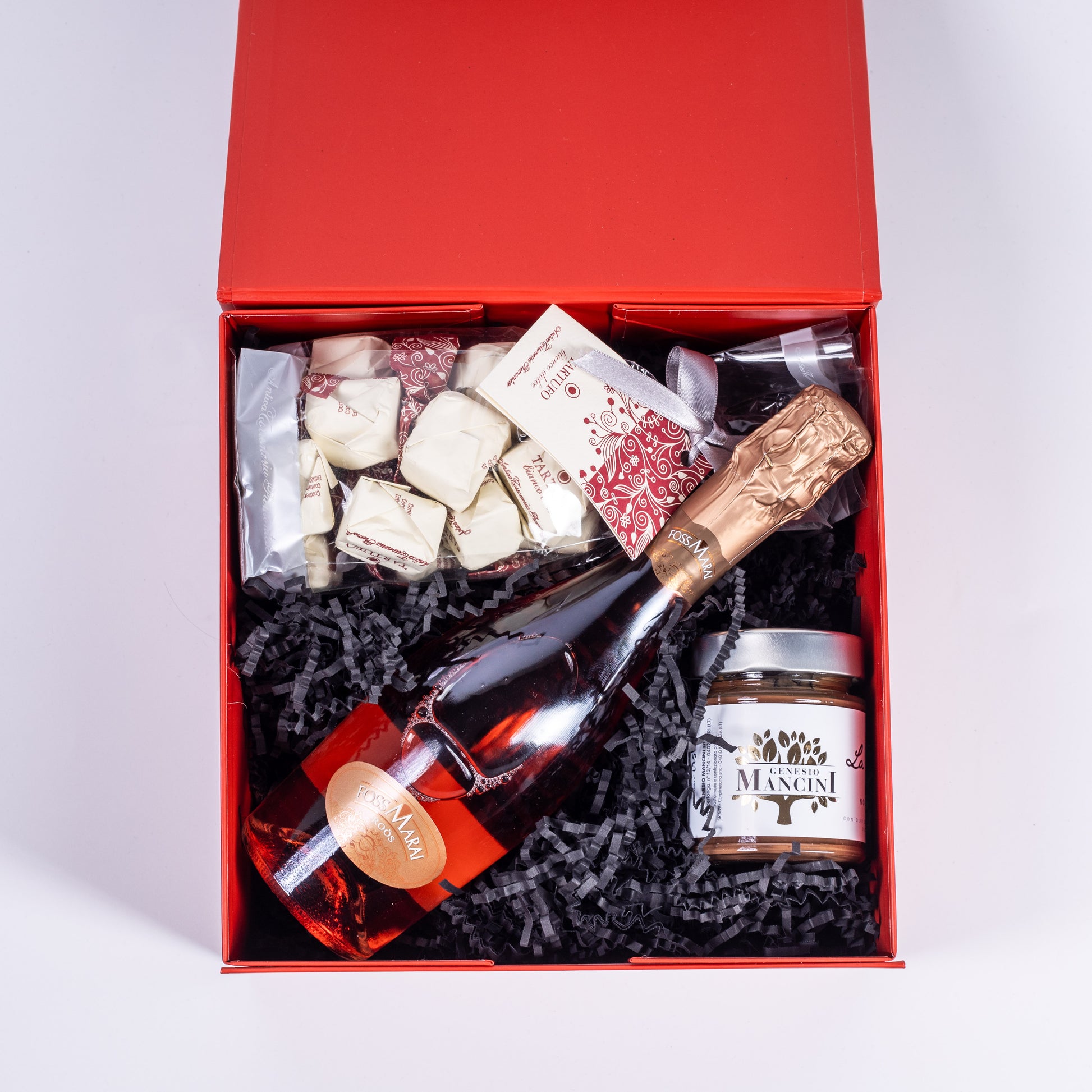 Unsere exklusive Valentinsbox vereint drei erlesene Köstlichkeiten, die den Geschmack Italiens in seiner sanftesten, verführerischsten Form zelebrieren. Ob als Geschenk für einen besonderen Menschen oder um gemeinsame Genussmomente zu schaffen – diese Box ist eine Liebeserklärung an feinste Zutaten, meisterhafte Handwerkskunst und italienische Dolce Vita.